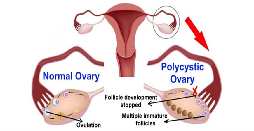A PCOS patient ovaries contains more than ten follicles visible on ultrasound. The polycystic ovary, in comparison to normal ovary, its layer has more follicle and has a dense centre. This centre is known as stroma which is where testosterone made [4]. Generally, PCOS consist of the presence of any 3 criteria, oligo-anovulation, clinical or biochemical evidence of hyperandrogenism and the presence of polycystic ovaries on ultrasound examination. However, polycystic ovaries are non-specific finding noted in women with no endocrine or metabolic abnormalities. PCOS is one of leading cause of female subfertility and the most frequent endocrine problem in women of reproductive age. The cysts are not harmful but lead to hormone imbalances and cause problems of periods and make difficult to get pregnant. PCOS is medical condition in which there is an imbalance of female sex hormones. That is, elevated levels of testosterone, DHEA-S, androstenedione, prolactin and LH along with normal, high or low estrogen levels. Hyperinsulinemia, insulin resistance and impaired glucose tolerance are very common in women with PCOS but insulin resistance may occur in lean women with PCOS [7] National Institute of Health (NIH), it was recommended that the diagnostic criteria for PCOS involve the concomitant presence of anovulation and evidence of hyperandrogenaemia [8]. In clinical practice, 75% of women with PCOS suffer from anovulation infertility and 50% of them experience recurrent pregnancy loss. However, it not clear whether these defects are caused by uterine dysfunction itself or by the interrupted interaction between uterine cells and developing embryo. Young women with PCOS induced endometrial hyperplasia are more likely than non PCOS women to develop endometrial carcinoma. The precise etiology and pathogenesis of PCOS remain uncertain PCOS are commonly found by the use of ultrasound, magnetic resonance imaging (MRI) and computed tomography scanning (CT) . Ethology The exact cause of PCOS is unknown or heterogeneous in nature however it certainly linked to a variety of etiological factors . Insulin resistance PCOS is a multifaceted metabolic disorder that shows high association with insulin resistance leading the hyperinsulinemia, 10% show type-2 diabetes. 30-35% have impaired glucose tolerance (IGT). Result in increased production of testosterone lead to abnormal ovulation. Studies suggest that high activity levels of micro RNA in fat cell hinders the use of glucose by insulin contributing to PCOS and also insulin resistance [2] Hyperinsulinemia is probably the result of both increased insulin secretion and a decrease in insulin clearance. Anovulatory women with PCOS are relatively hyperinsulinaemic and more insulin resistant than ovulatory women with PCOS [4] Selective insulin resistance is central to the etiology of PCOS. Thus compensatory hyperinsulinaemia may result in a decreased level of serum hormone binding globulin (SHBG), and serve as a trophic stimulus to androgen production in the adrenals and ovaries and have a direct effect on hypothalamus causing an abnormally stimulated appetite and increased gonadotropin secretion. It includes reduced insulin receptor activity peripherally and leads to endocrine dysfunction of PCOS. Obesity amplifies the degree of insulin resistance and hyperinsulinaemia. 6.Insulin drives increased androgen production from the ovary and adrenal and may alter gonadotropin secretion. It is also responsible for decreased SHBG synthesis in the liver thus increasing free testosterone in the circulation. Ovarian insulin sensitivity to the prevailing hyperinsulinemia is thought to be one of the mechanisms that drives ovarian androgen production. Body mass index, hyperandrogenaemia, and clinical hyperandrogenism are independent predictors of insulin resistance [10]. Altered steroid negative feedback regulation of LH together with the compensatory hyperinsulinemia due to insulin resistance may disrupt ovulatory function, causing anovulation . The polycystic ovary disorder (PCOS) is characterized as a mix of hyperandrogenism (hirsutism and skin break out) and anovulation (oligomenorrhea, barrenness, and useless uterine seeping), with or without the nearness of polycystic ovaries on ultrasound. It speaks to the primary endocrine issue in the conceptive age, influencing 6% - 15% of ladies in threats. It is the most widely recognized reason for barrenness because of anovulation, and the primary wellspring of female fruitlessness. At the point when in the pre-since of a menstrual issue, the finding of PCOS is come to in 30% - 40% of patients with essential or auxiliary amenorrhea and in 80% of patients with oligomenorrhea. PCOS ought to be analyzed and treated right off the bat in pre-adulthood because of conceptive, metabolic and ontological difficulties which might be related with it. Treatment choices incorporate medications, diet and way of life improvement. For solid youthful couples, the probability of getting pregnancy differs. In 2010, an expected 48.5 million couples worldwide were barren. This paper gives a survey on barrenness causes, examinations, treatment modalities and job of medical attendant birthing specialist in managing fruitless couples. Barrenness (a condition of sub richness) can be showed either as the failure to wind up pregnant, powerlessness to maintain a pregnancy, and failure to proceed with a pregnancy till term. There are different reasons for female and male fruitlessness.